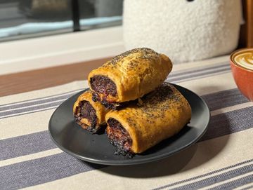 Our best seller for a reason! Homemade flaky puff pastry, filled with pork, carrots, celery, onions and corn along with our specialty spice blend